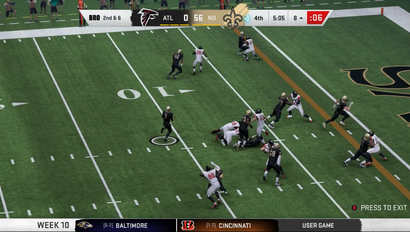 Up 56 points, the Saints were driving again, and on what looked to be a RPO (run-pass-option) play, Saints quarterback Russell Wilson, who is fast in real life, decided to attempt a quarterback sneak into the endzone.