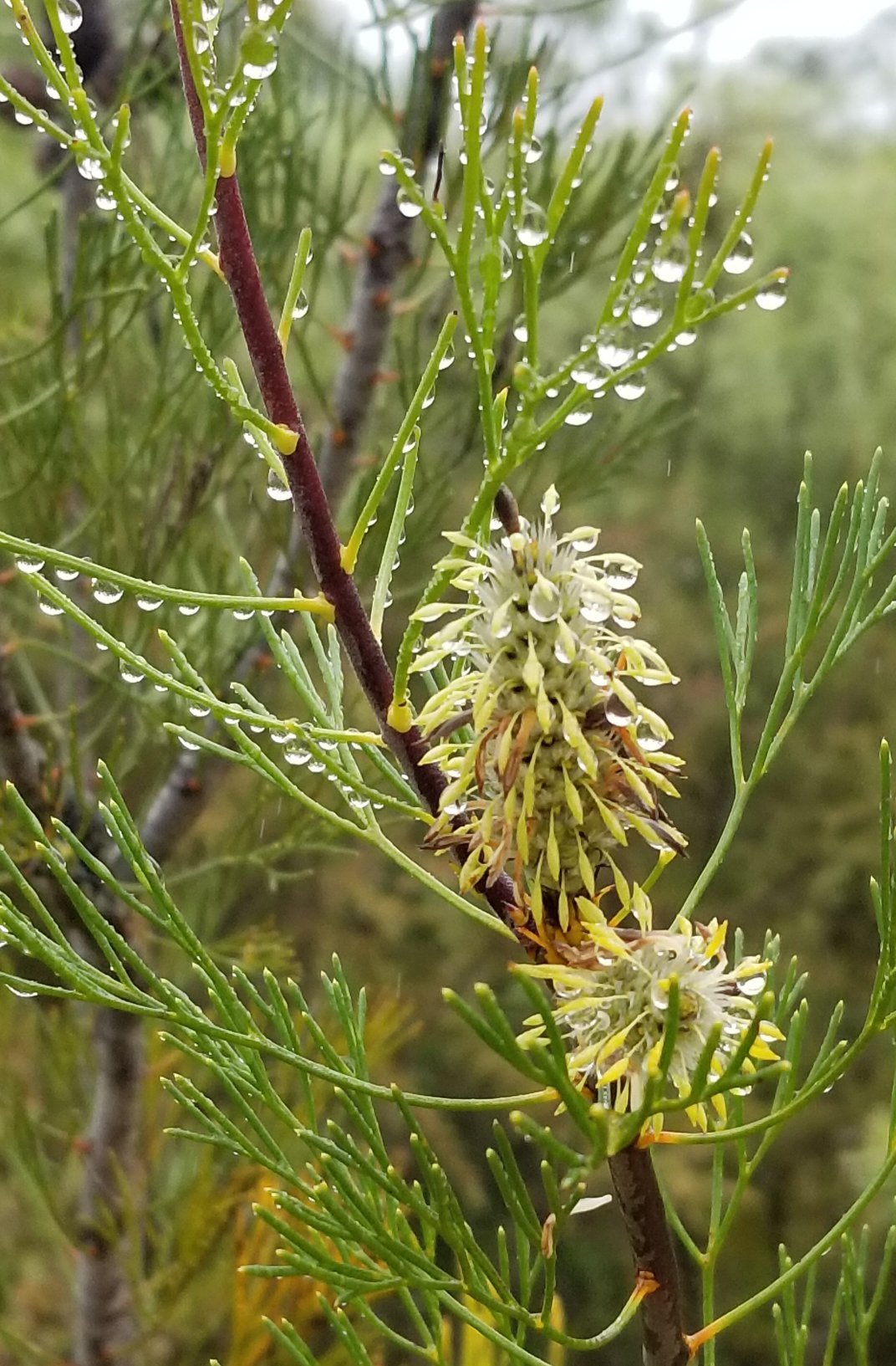Grey spider grevillea with raindrops