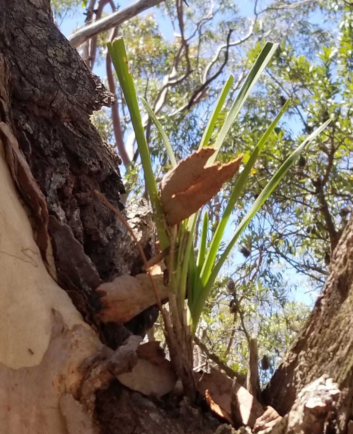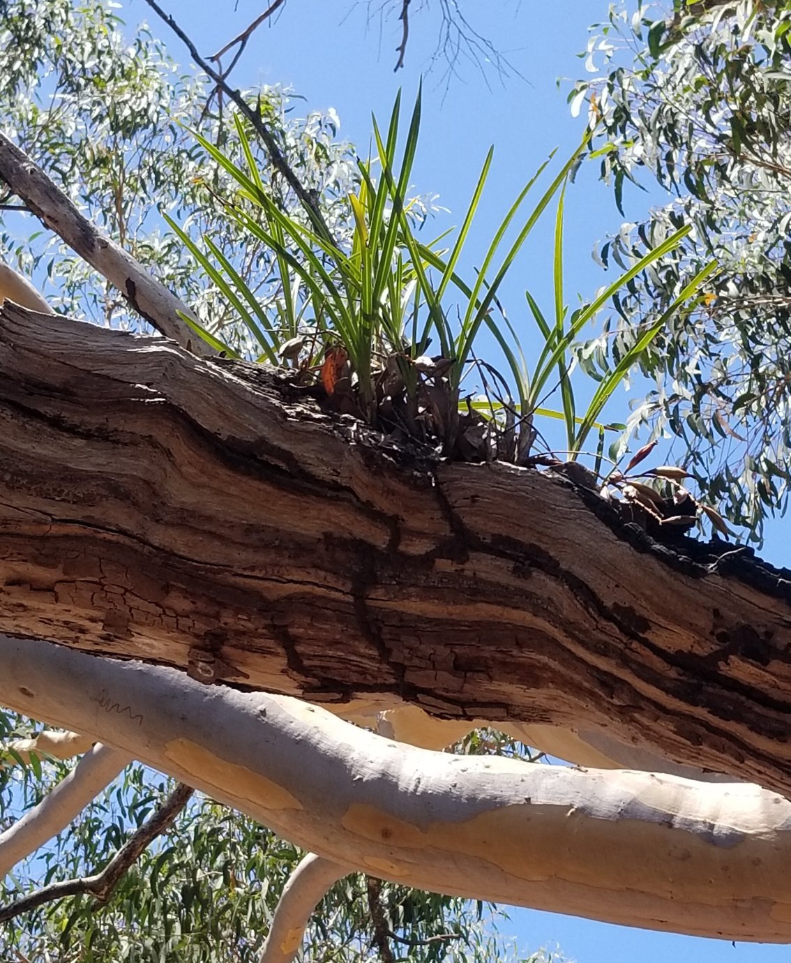 Did find another snake orchid. They like scribbly gums and seem to find a spot from 2 to 4 metres above ground. This one in a burned out heart of the tree. How they get here is a good question? Easy. They come from up higher. How they get there? Good thought