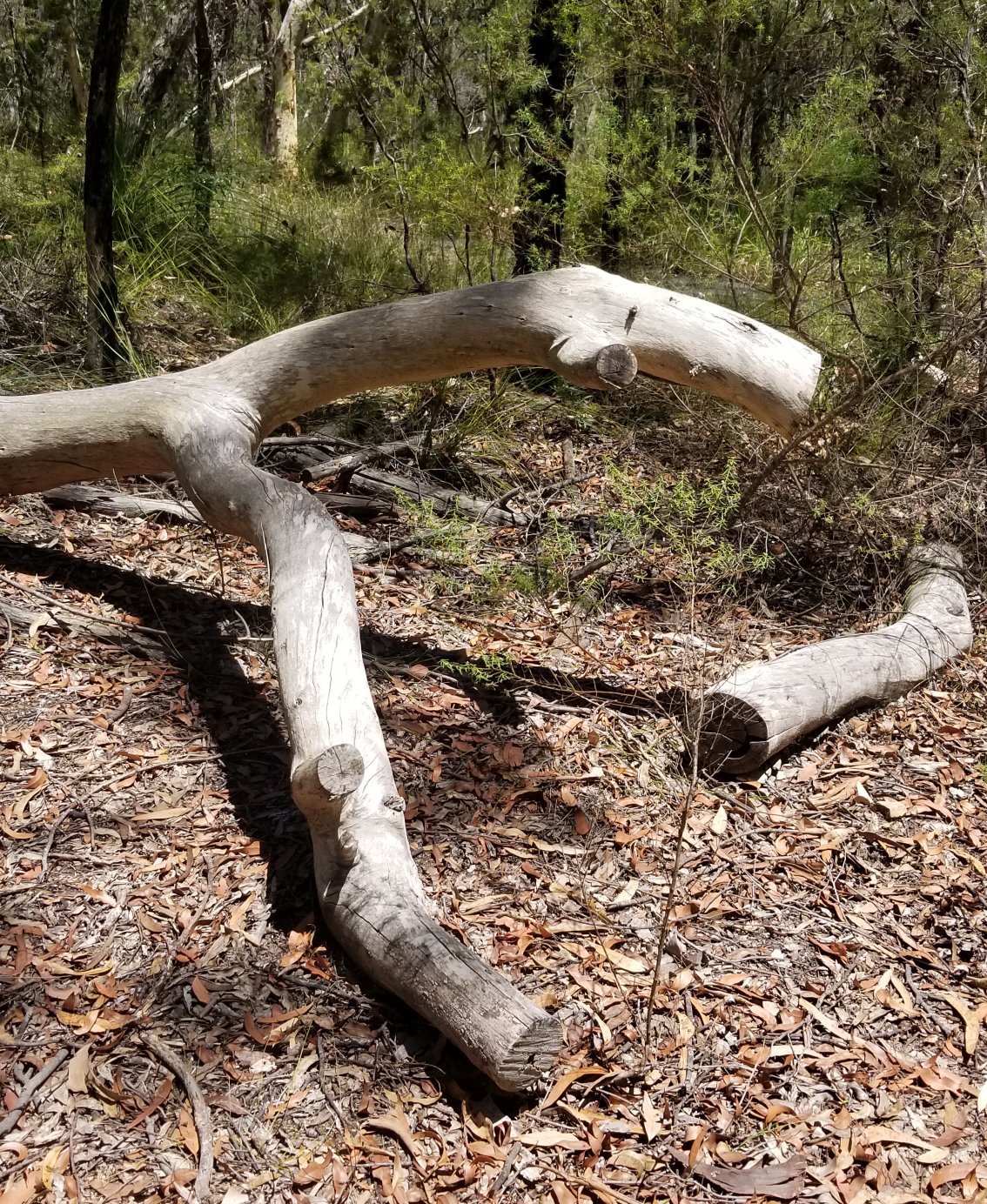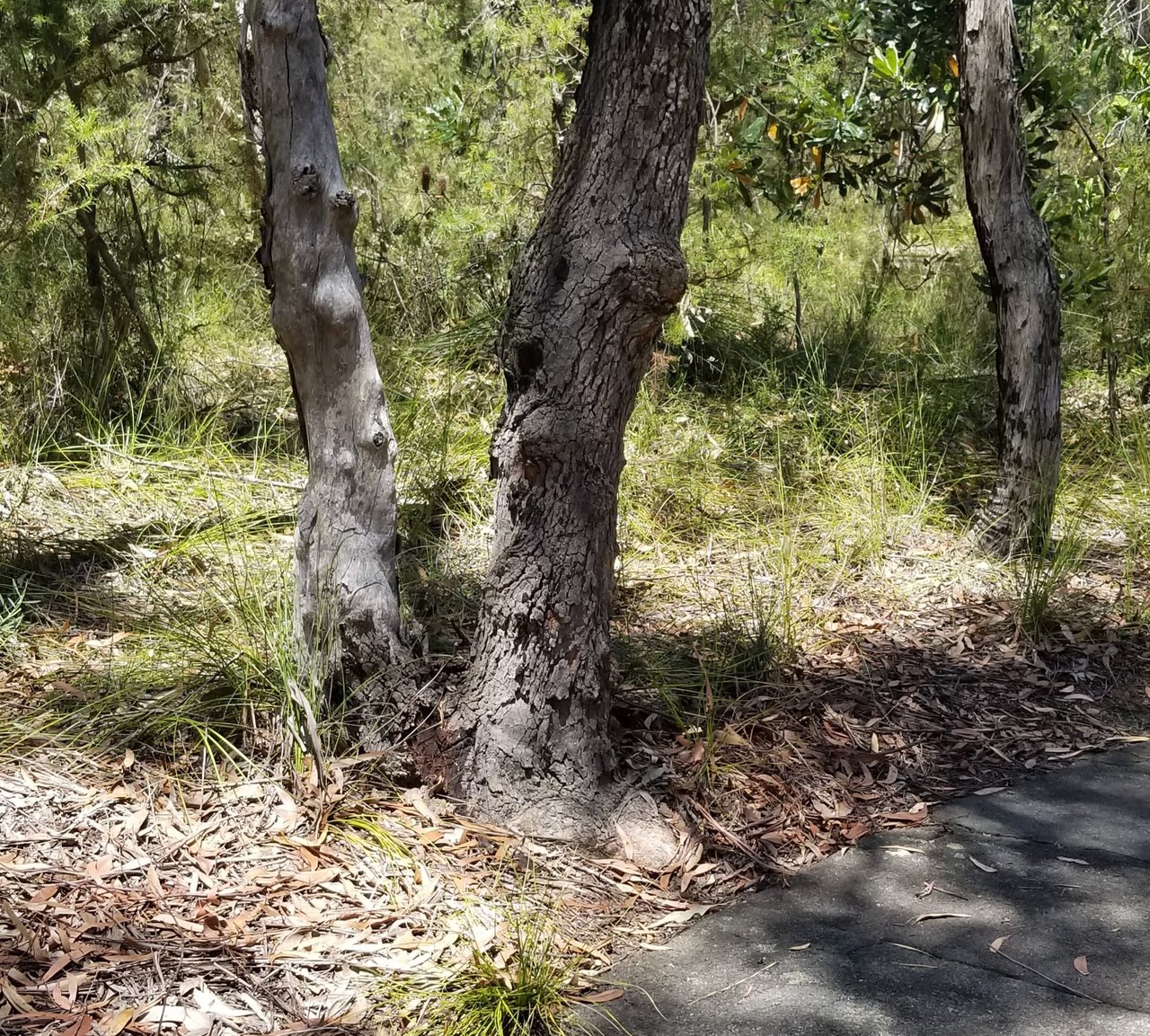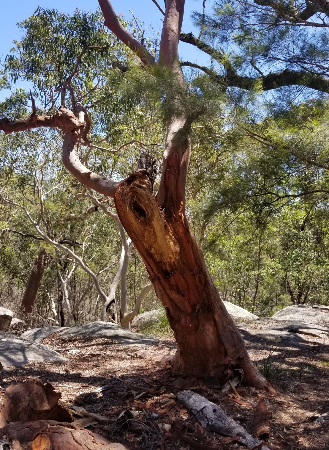 Last clue photo - not a scribbly gum and not yellow - but it has formed a V above the ground