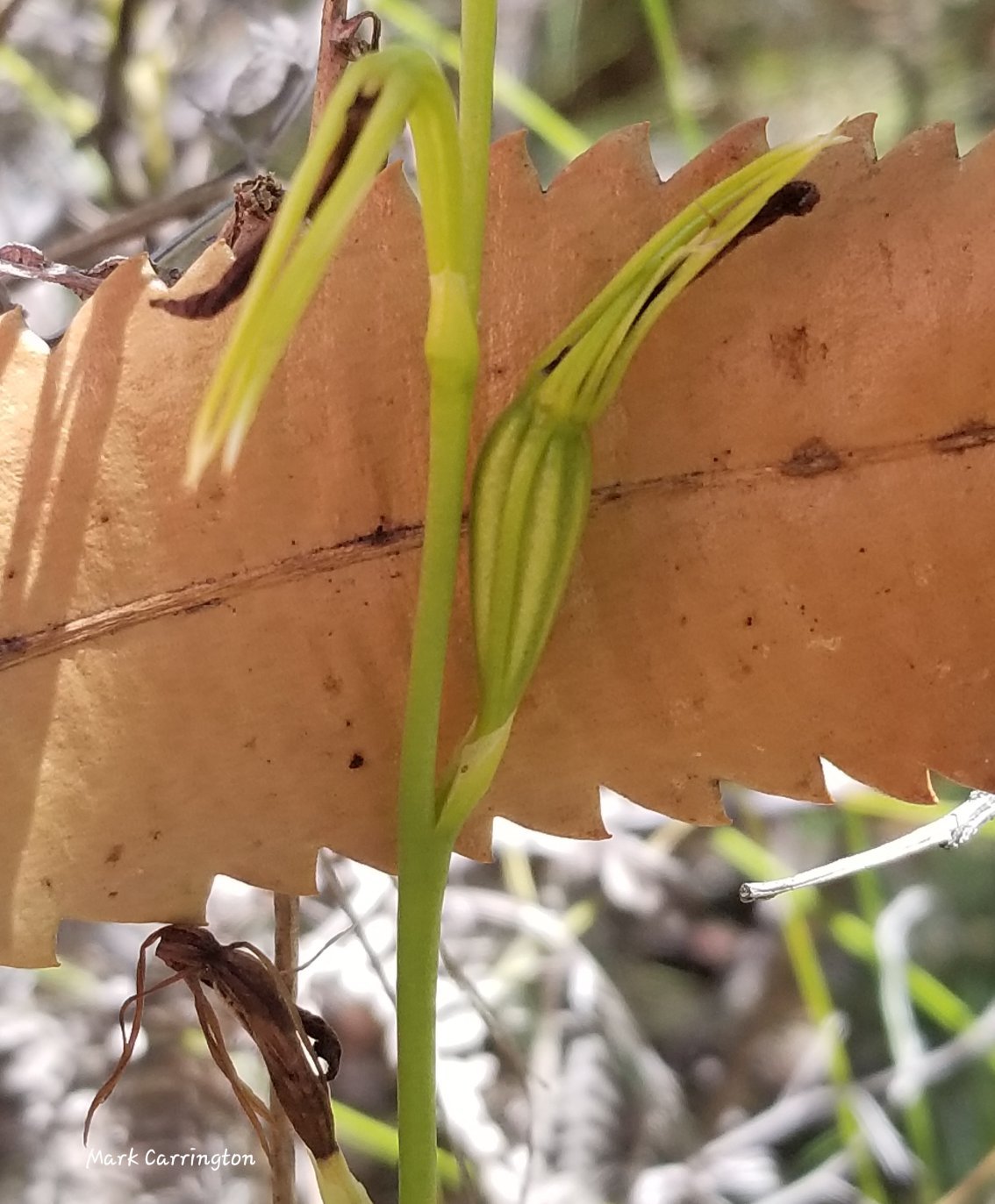 Checking on the snake orchid sites - this is the first I found here. The flowers have been and seeded - pods on the right hand side just above the branch