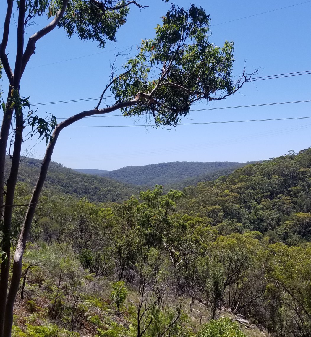 View across South Cowan Creek under the powerlines with Bobbin Head marina in the V