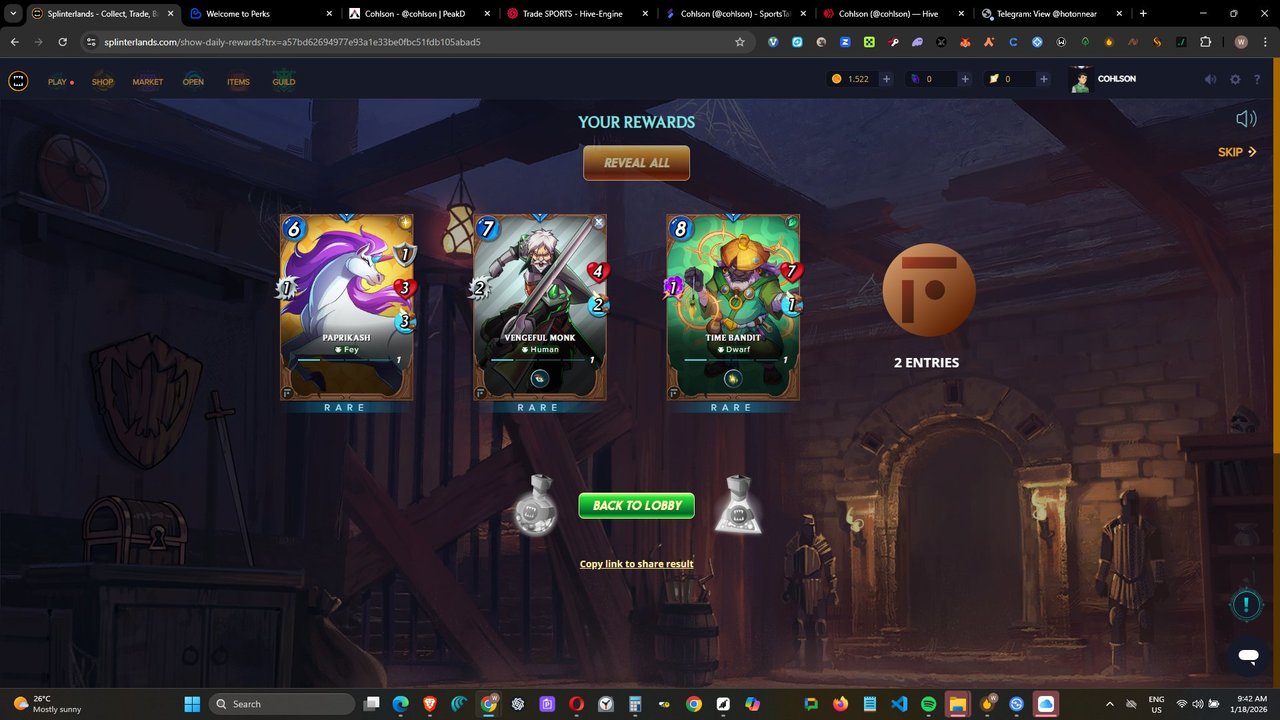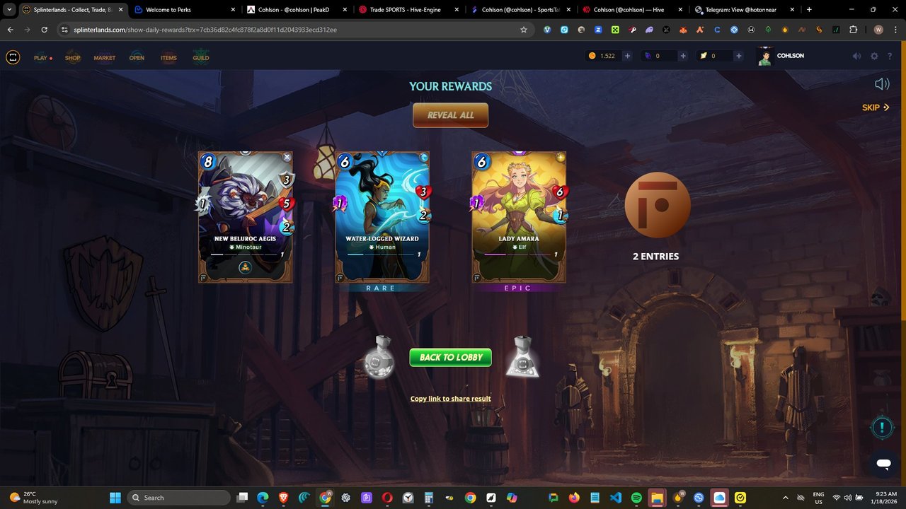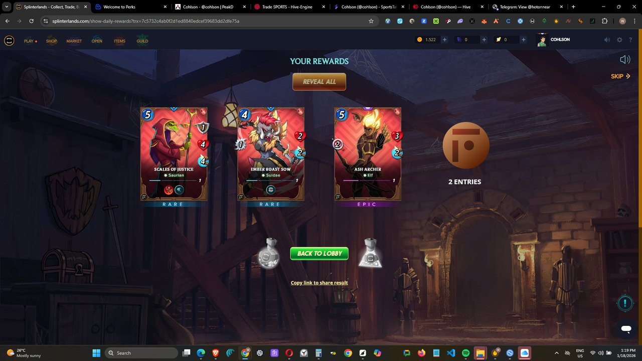 Today was really productive on splinterlands Got 6 rare cards and two epic cards was able to collect all the daily rewards on silver rank today.