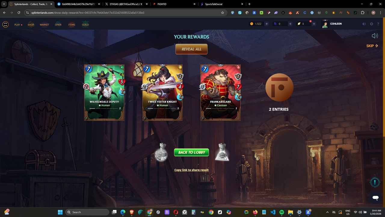 Got a rare and 5 common cards from 2 reward chest, I'll keep grinding, see you tomorrow.