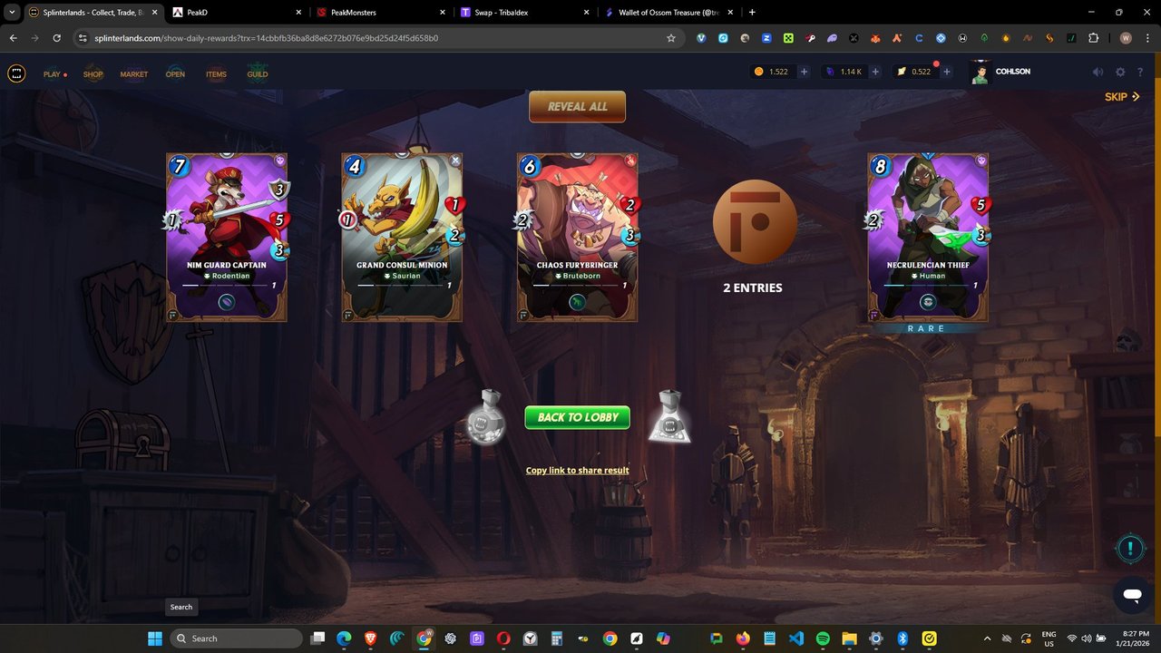 As for splinterlands Got the rare jackpot today on one of my rewards.