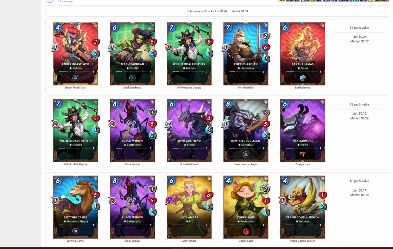 Got 3 foubdation packs on splinterlands got a gold rare gold foil card. Got a total of 15 cards with current market price at around #0.4