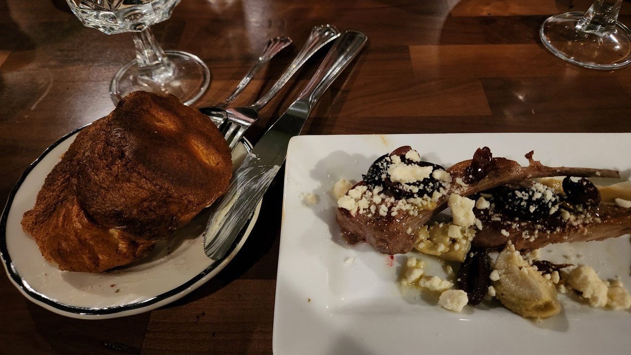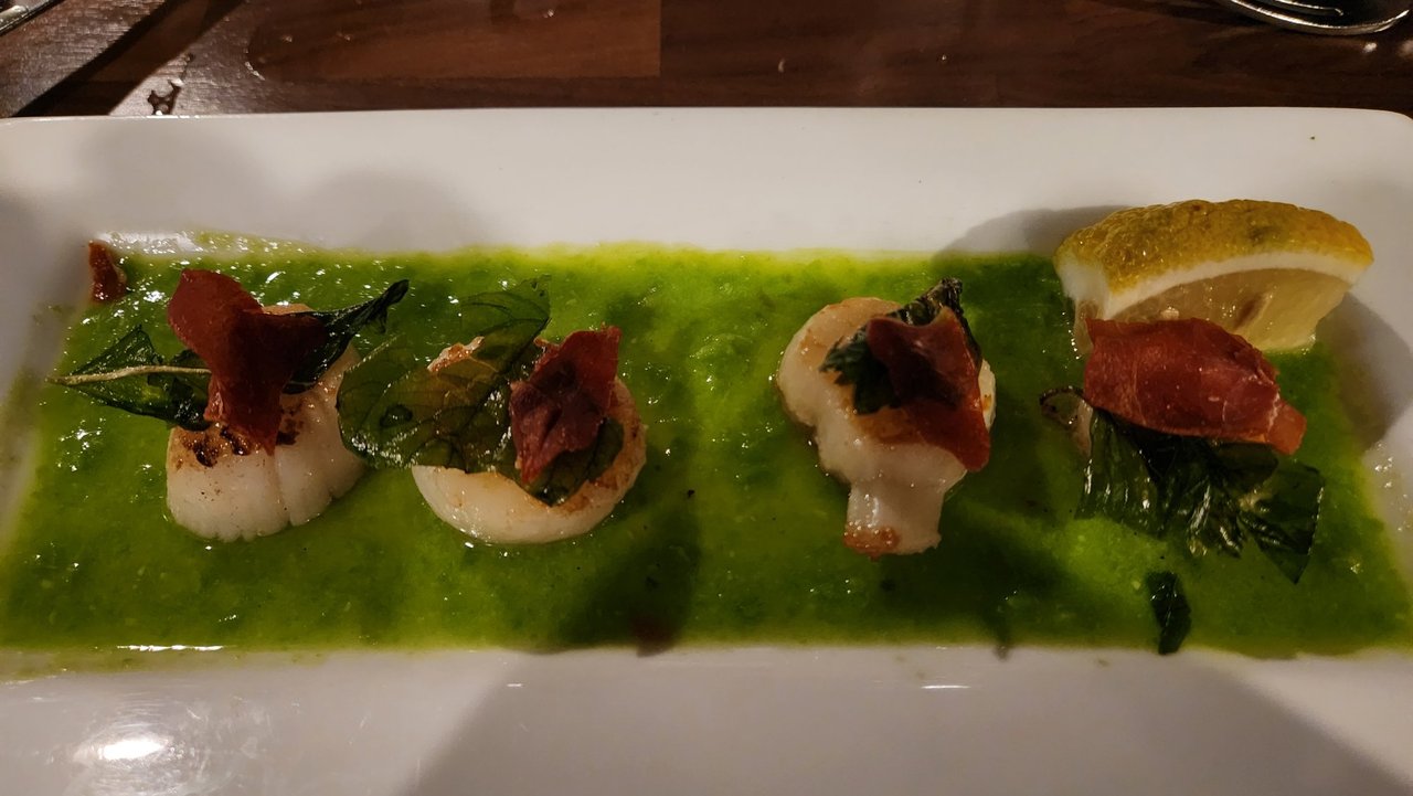 Gotta finish the post by showing some love to the tasty meal to finish the day. Starter of two roast lamb chops with Greek trimmings and a main of scallops served over green peas with crispy prosciutto. Not pictured is the coffee creme brulee I inhaled. Ready to ski off the calories tomorrow. Until next time...