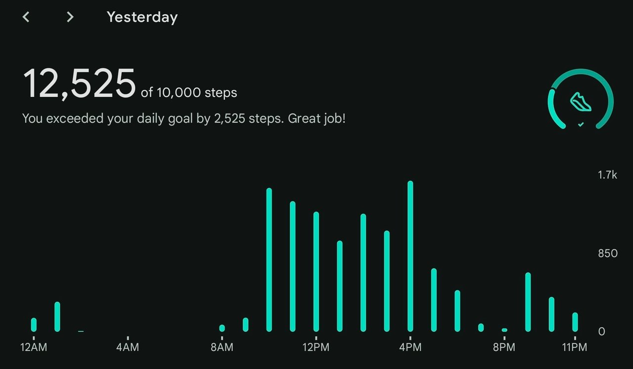 In the afternoon, the sun came out a bit to warm up the mountain and we found some soft snow skiing the trees once the senior citizens went in early. Im not sure how the FitBit manages my steps when I'm out skiing, but I did remember to activate the ski mode on my watch before I started and a pause for lunch.