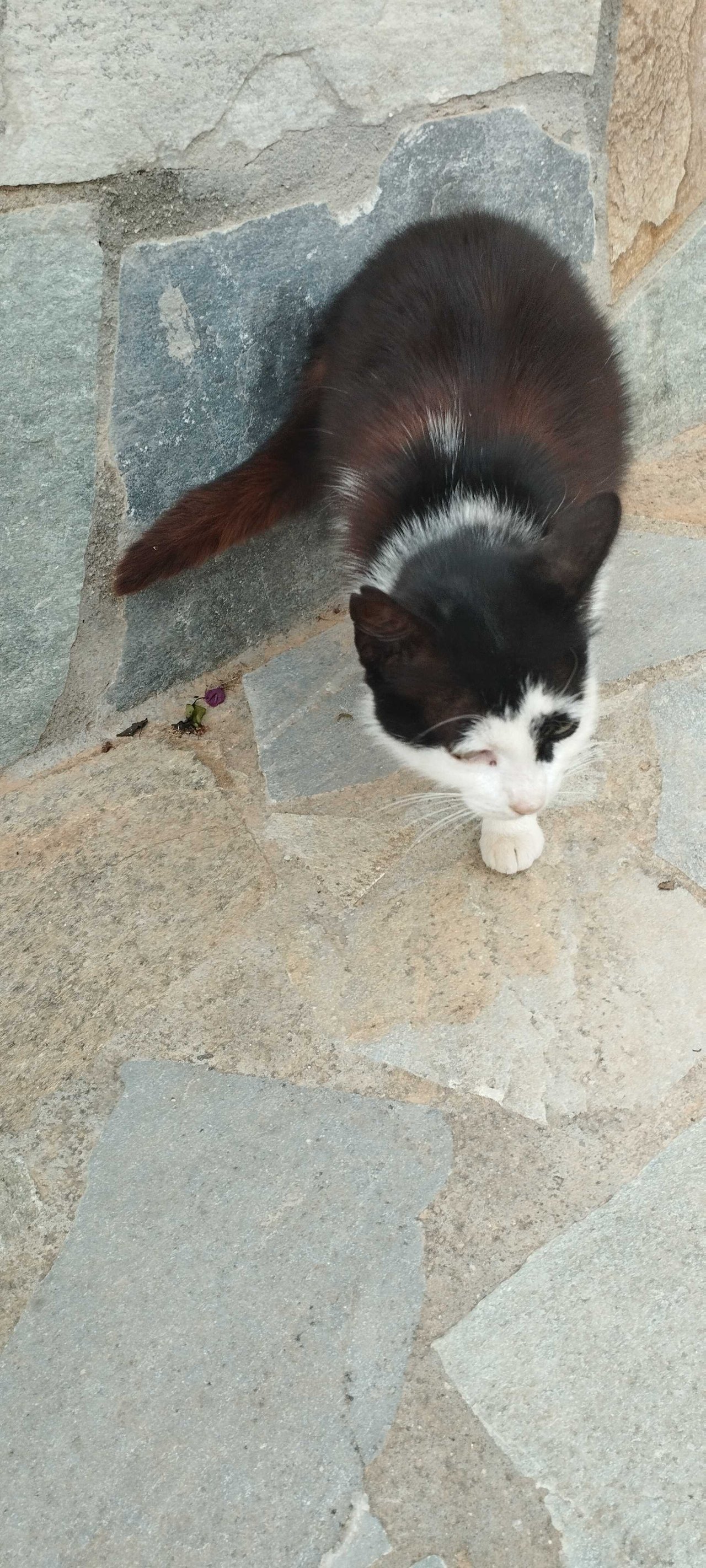 Yesterday i went to throw the rubbish and i found this kid to my neighborhood and i decided to talk to this baby and it let me to pet it on the head.