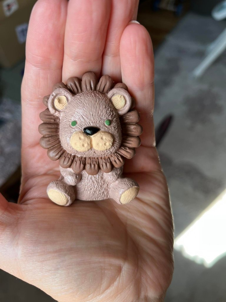 Colouring An interesting activity. Figure of a plaster lion, coloured and ready fo ...