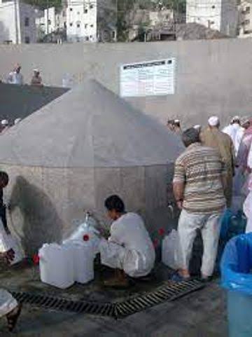 The well of Zam Zam water is present inside the Masjid Al-Haram in Mecca city of Saudi Arabia.