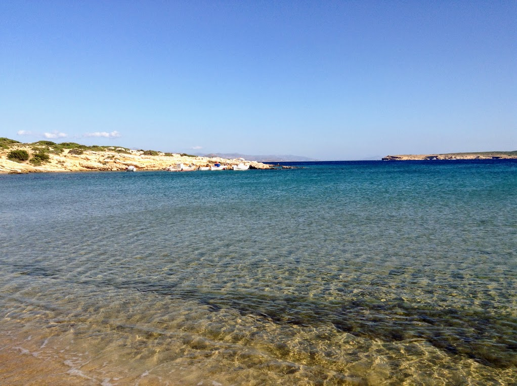 La plage de Santa Maria est une des plages branchées de Paros. Son eau est cristalline et Naoussa n'est qu'à environ 3 kms