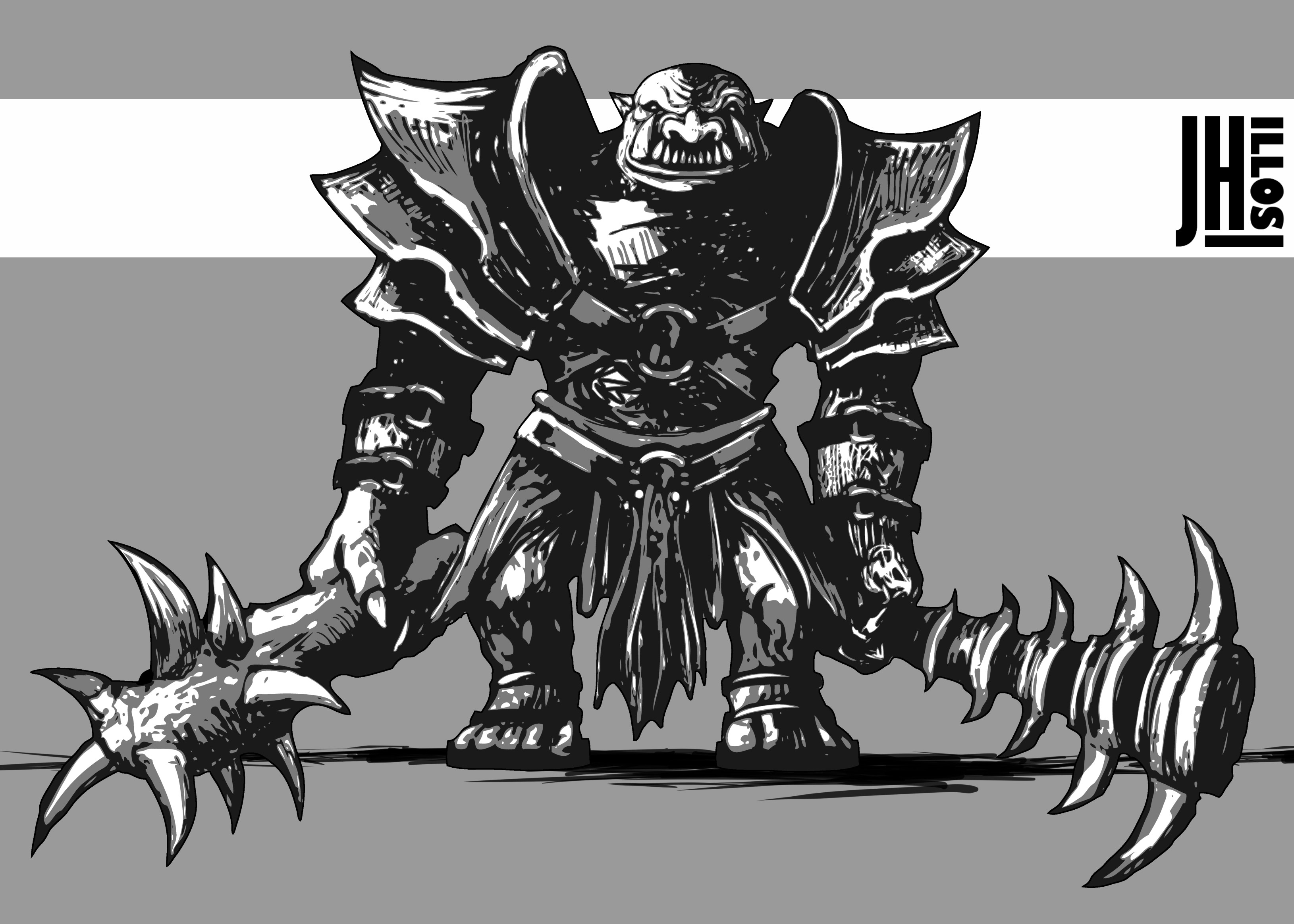 Ogre Boss I'm working on. More variation images on my Patreon and Subscribestar. I'm not sure if it's unique enough to make it into the Creature Feature Quarterly. But I was trying to define the character a bit more through gear. Most of my monsters tend to be kinda naked... or wear some sort of loinpiece. LoL. I like how the nearly all black one is turning out. Very moody. If I have time, I'll go back and use the other ones as a guide to pick out details in the darkest one. And, of course I'm sure something in the anatomy will smack me in the face next time I look at it. I should probably take more breaks.