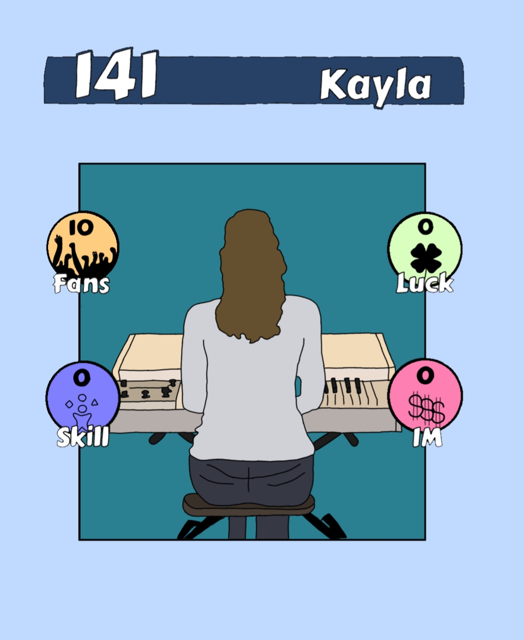 The next picture for Risingstar is 141 Kayla. Kayla is still learning to play the piano. During this learning period, Kayla will need to be healed by playing the piano.