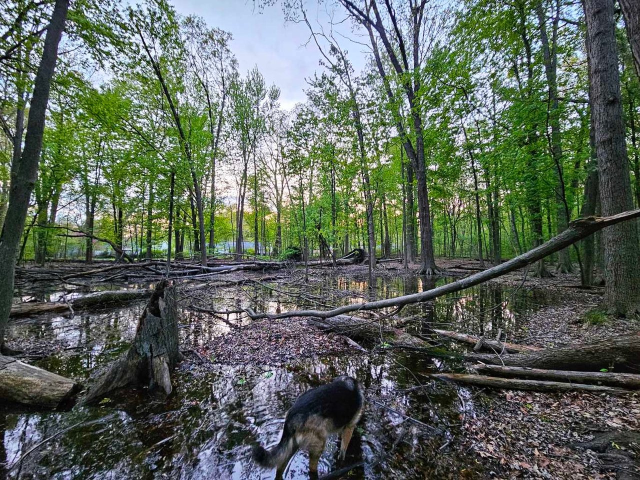 Just like a couple days ago, many parts of the trails are still flooded, so we walked around them. Well, not Kaia, she walked through them of course. Rest of the walk was uneventful.