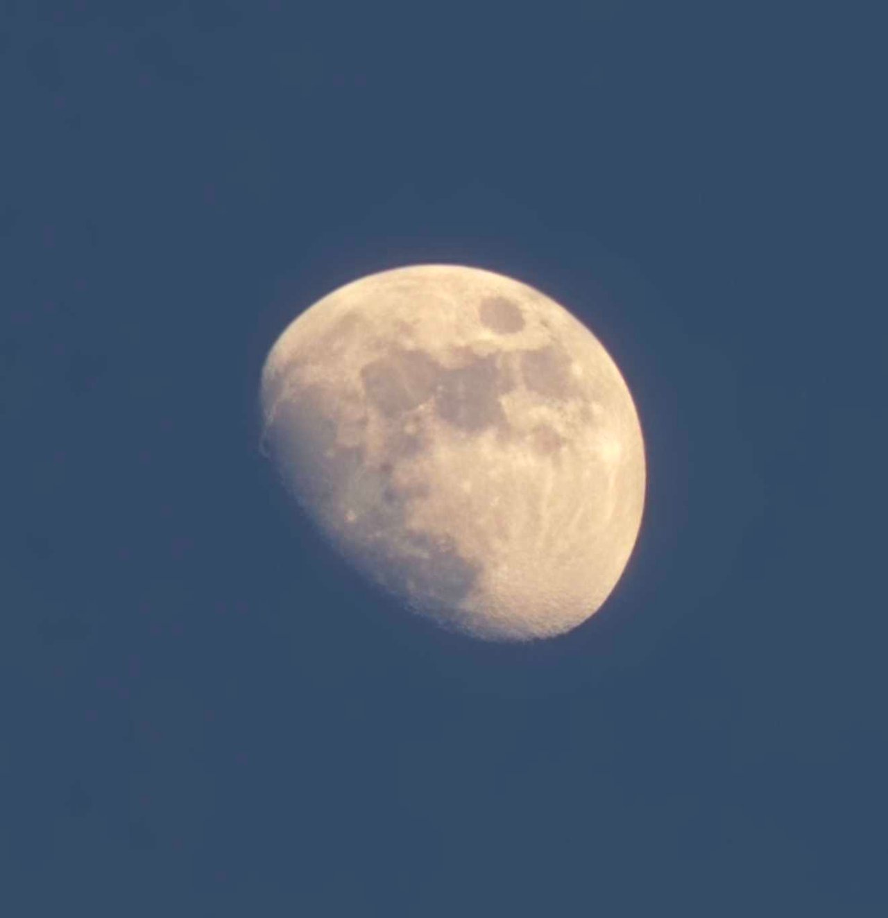 The Moon was already up in the still blue sky.