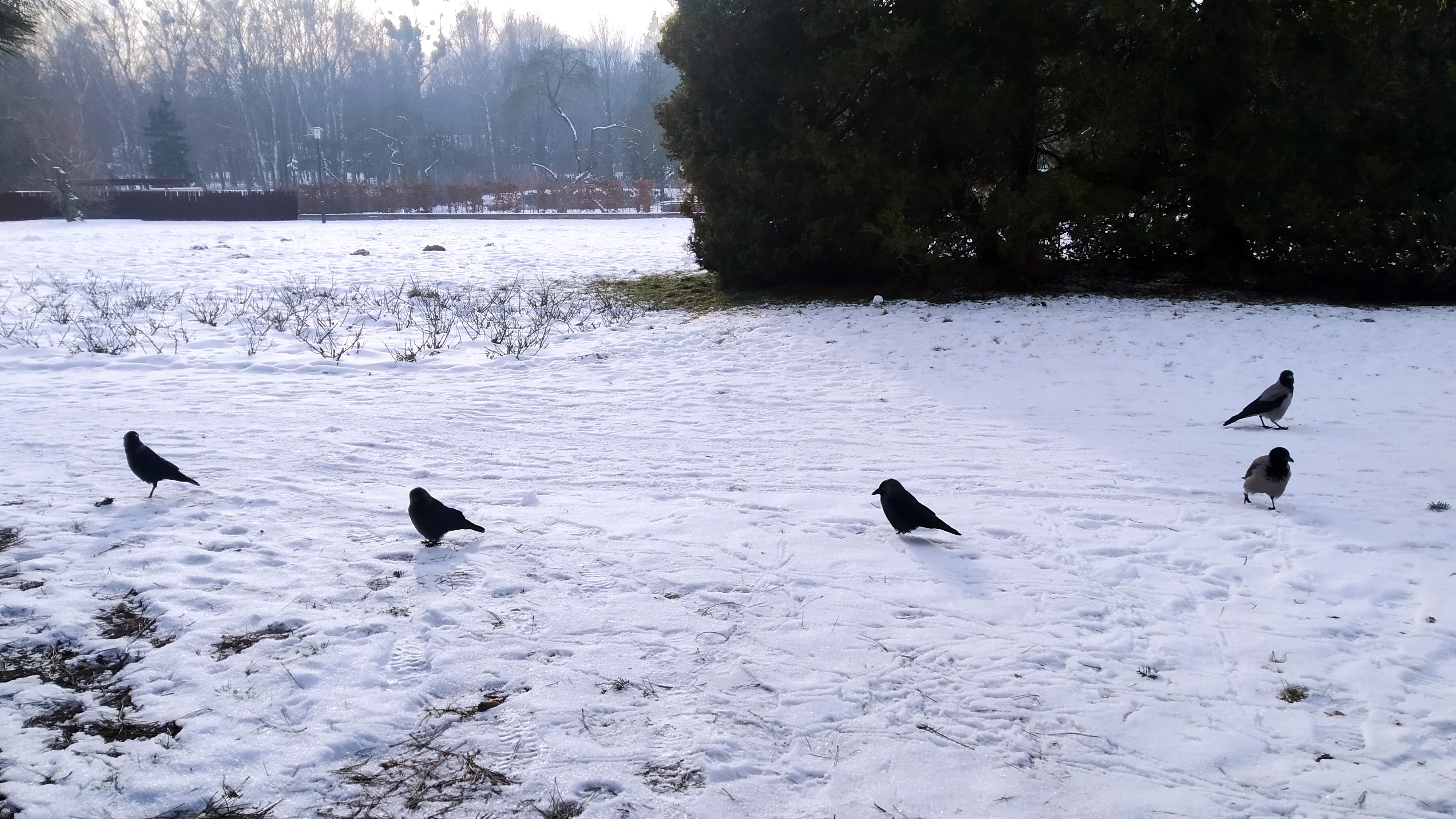 Ptaki pojawiły się dzisiaj gromadnie, wszystkie które do tej pory się pojawiały. Nakarmione zostały nową partią orzeszków.