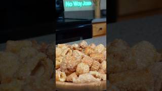 o Fry the dehydrated pork skins in batches for 3-6 minutes or until they puff up and become crispy. Remove and drain on paper towels.