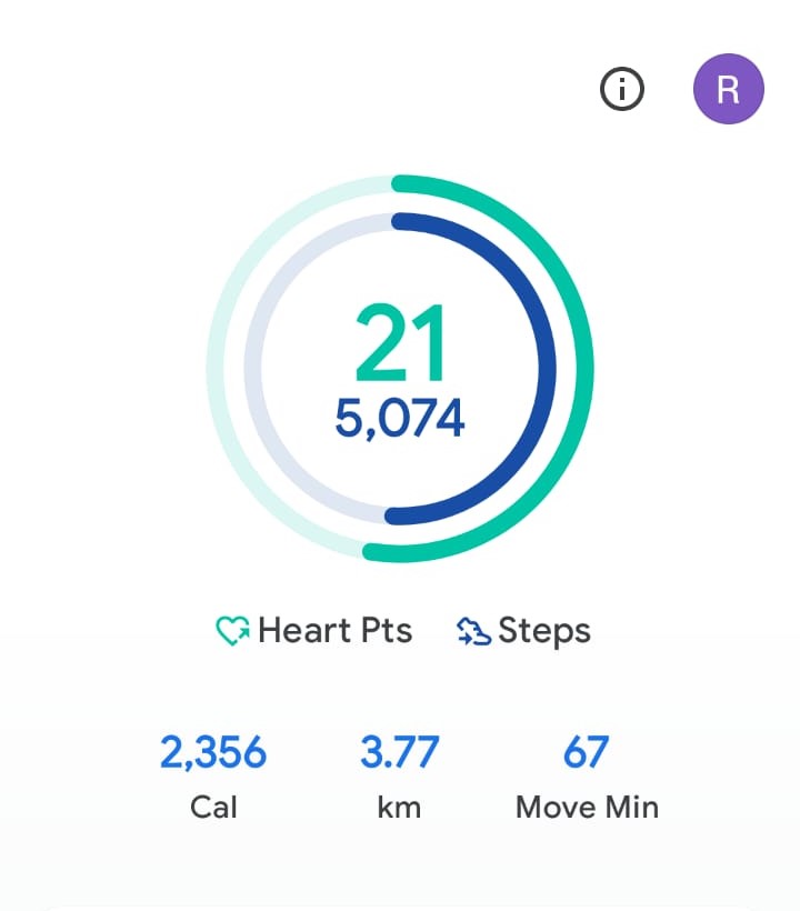 According to Google Fit, I walked 5074 steps, 3.77 km, and burned 2356 Cal. Take care of your health and enjoy your life in a healthy way.