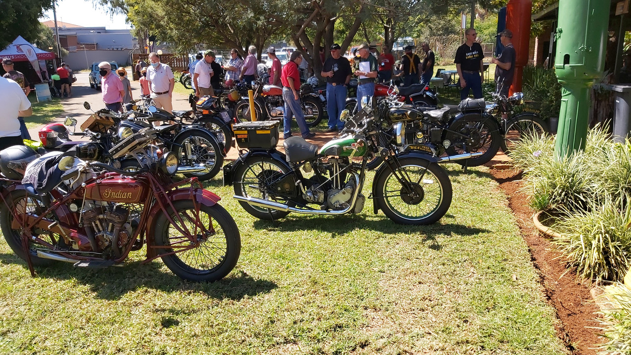 POMC (Pretoria Old Motor Club); Motor Cycles on display.