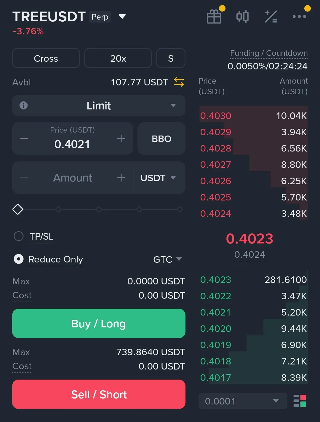 I had posted a post yesterday about trading and this morning I had also posted it in which I had lost $100. To cover this loss, I have placed a trade since yesterday. You can see. I have placed a trade on a coin called Tree. I have placed a trade on TREE coin on futures. Since yesterday, I have placed a trade on this coin at 0.4376, long, but since I placed this trade, it has been going short. You can see everything in the screenshot. It has fallen to 0.4023. Tell me whether this coin will be up or not. I have been waiting since yesterday. Please guide me.