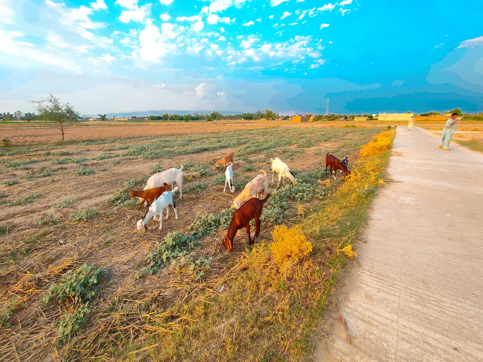 so beautiful looking sky and goat's looking so beautiful in my village field