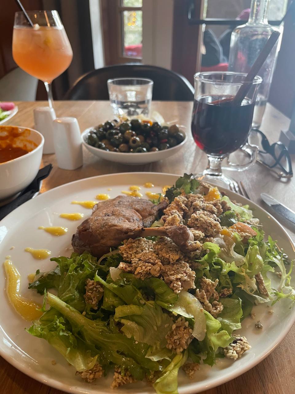 The cooking method used for duck is truly exceptional. I was fortunate enough to have a taste of the Duck Confit Salad previously and was so impressed that I made sure to order it once again on my next visit. The tender and juicy meat combined with the crispy skin is a tantalizing sensation for the taste buds. The flavors and spices used in the dish accentuate the natural taste of the duck, elevating it to a whole new level. The salad provides a perfect balance of fresh greens and tangy dressing that complements the rich flavor of the confit perfectly. The dish is a true testament to the culinary skills of the chef and leaves a lasting impression on the diners. I highly recommend giving it a try for anyone looking for a unique and delicious dining experience.