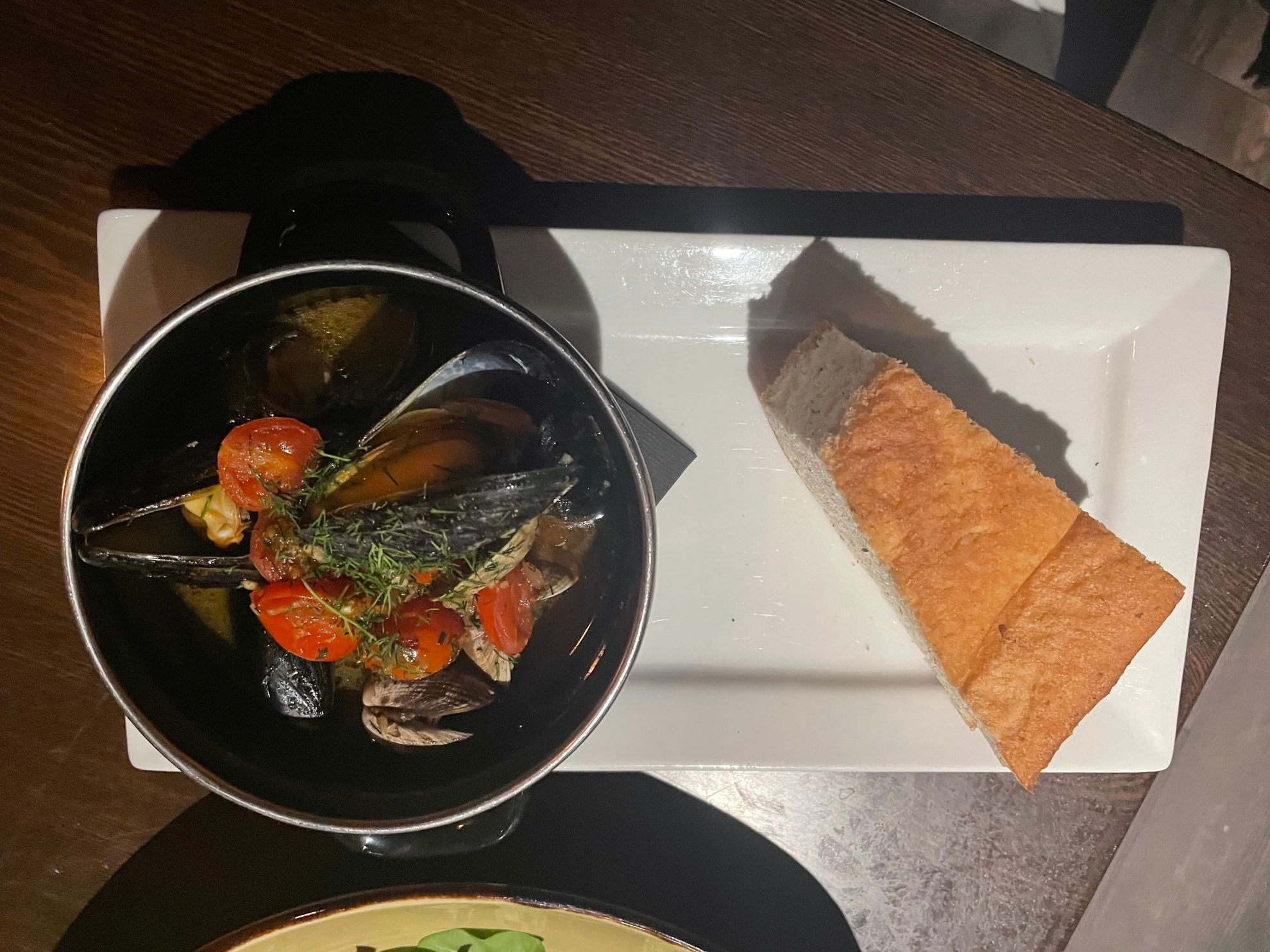 Fresh Mussels with bread - is a fun dish yo share. Initially I thought there was too much bread, but somehow it was gone pretty fast :-)