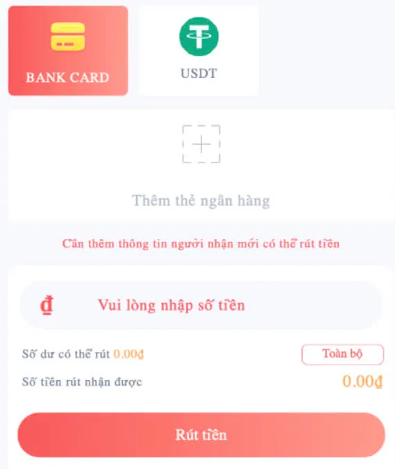 Bước 3 – Chọn mục “Rút tiền” và phương thức