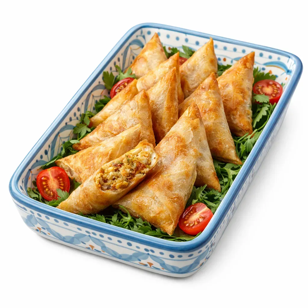 Immerse yourself in the flavors of Morocco with these savory briwats, featuring a delightful filling of spiced ground beef, eggs, and olives, all encased in crispy filo dough.