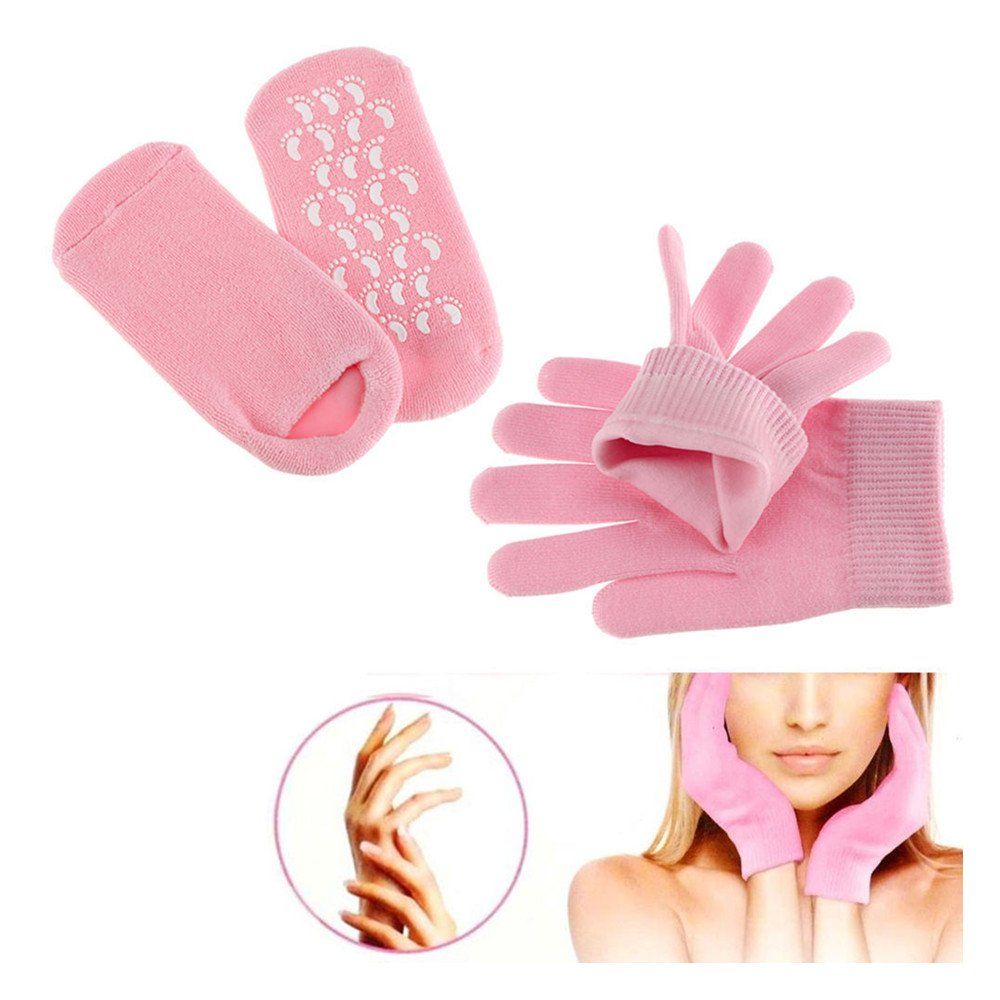 Gel Spa Sock and Glove Moisturizing for Soften Repairing Moisturizer Dry Cracked Hand Foot Skin Care Silicone inside–Pink