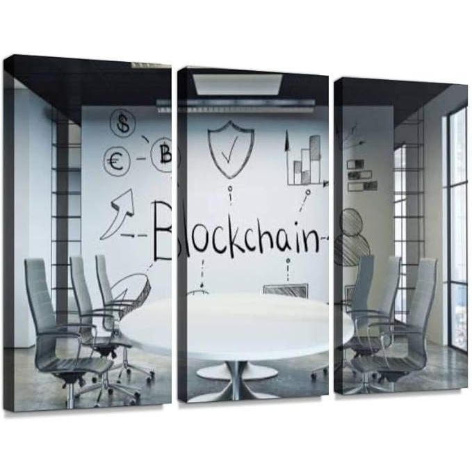 HABEN ARTWORK Conference Room with Blockchain Sketch Architectural Sketch Print On Canvas Wall Artwork Modern Photography Home Decor Unique Pattern Stretched and Framed 3 Piece