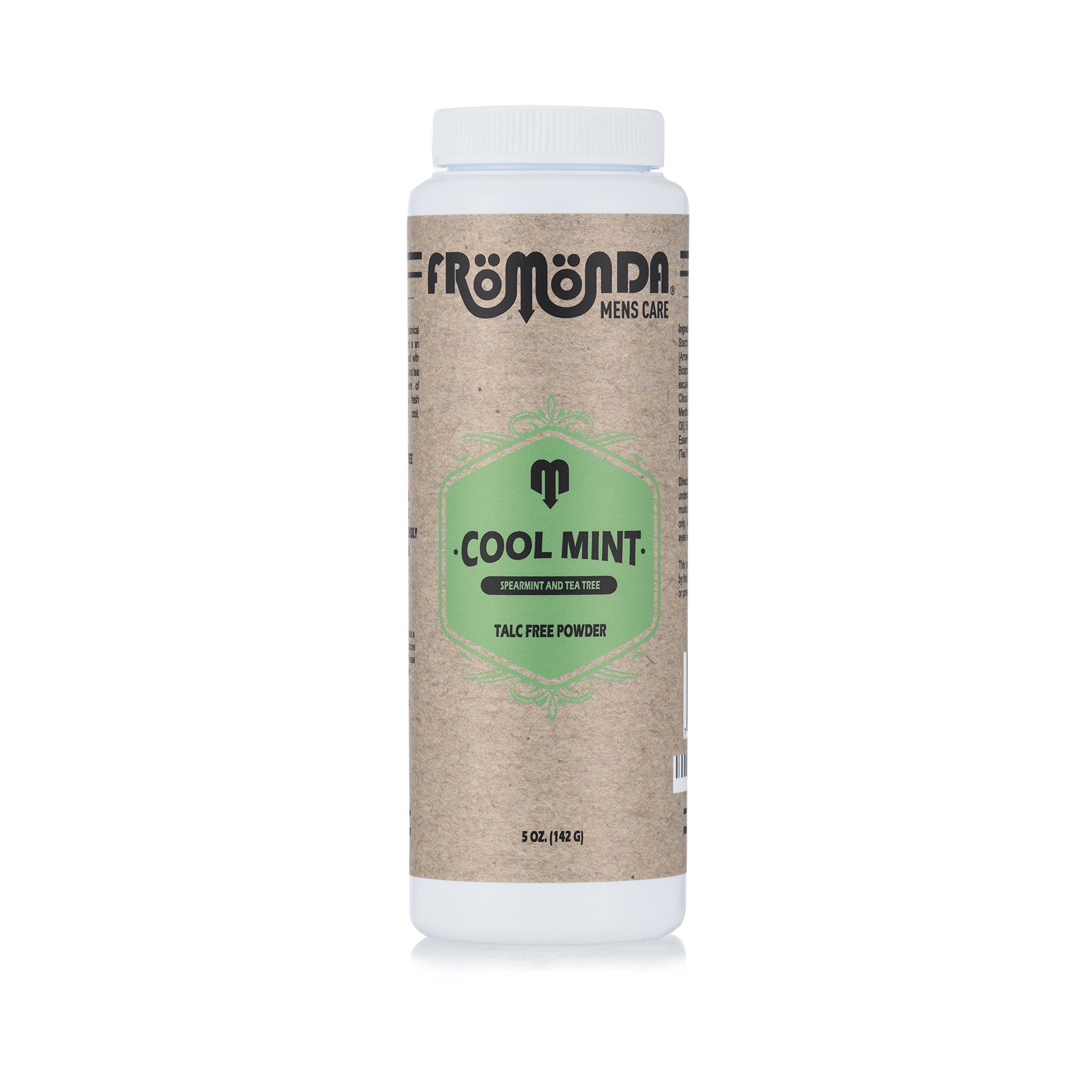 Fromonda Cool Mint Talc-Free Body Powder: Our refreshing Cool Mint Talc-free Powder is the body powder you never knew you needed. Summer sweat, humidity and that swampy feeling are no match for our cooling mint below-the-belt powder. The invigorating and refreshing scent of spearmint, tea tree and eucalyptus deodorizes, while the natural Baking Soda and kaolin clay powder absorb excess moisture and soothes sensitive skin. This powerful blend is gentle enough for the most sensitive spots, but works hard to keep your berries and twigs comfortably dry. less