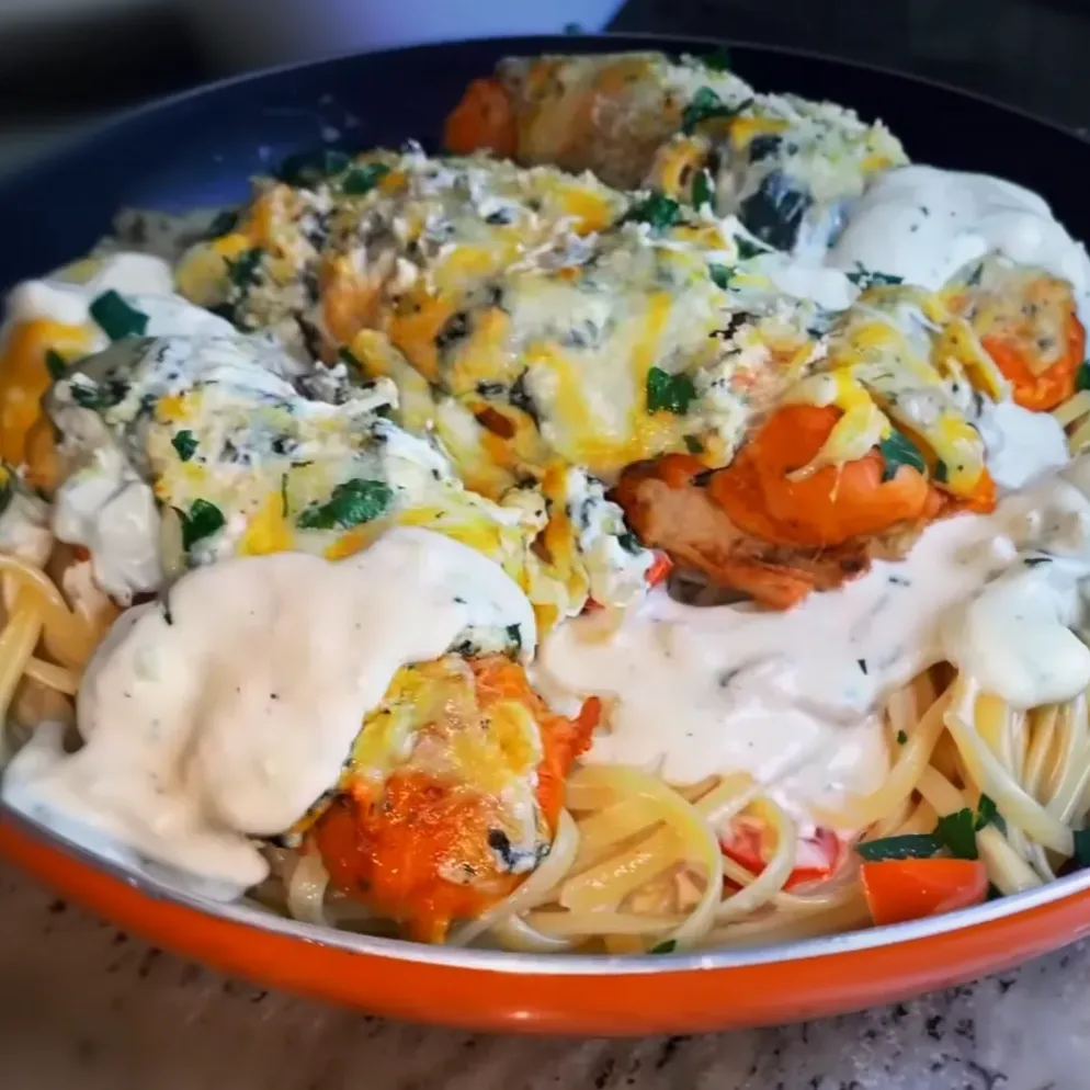 Easy Creamy Cheesy Chicken Melt is a deliciously indulgent dish featuring seasoned chicken breasts, a rich spinach and cheese stuffing, a...