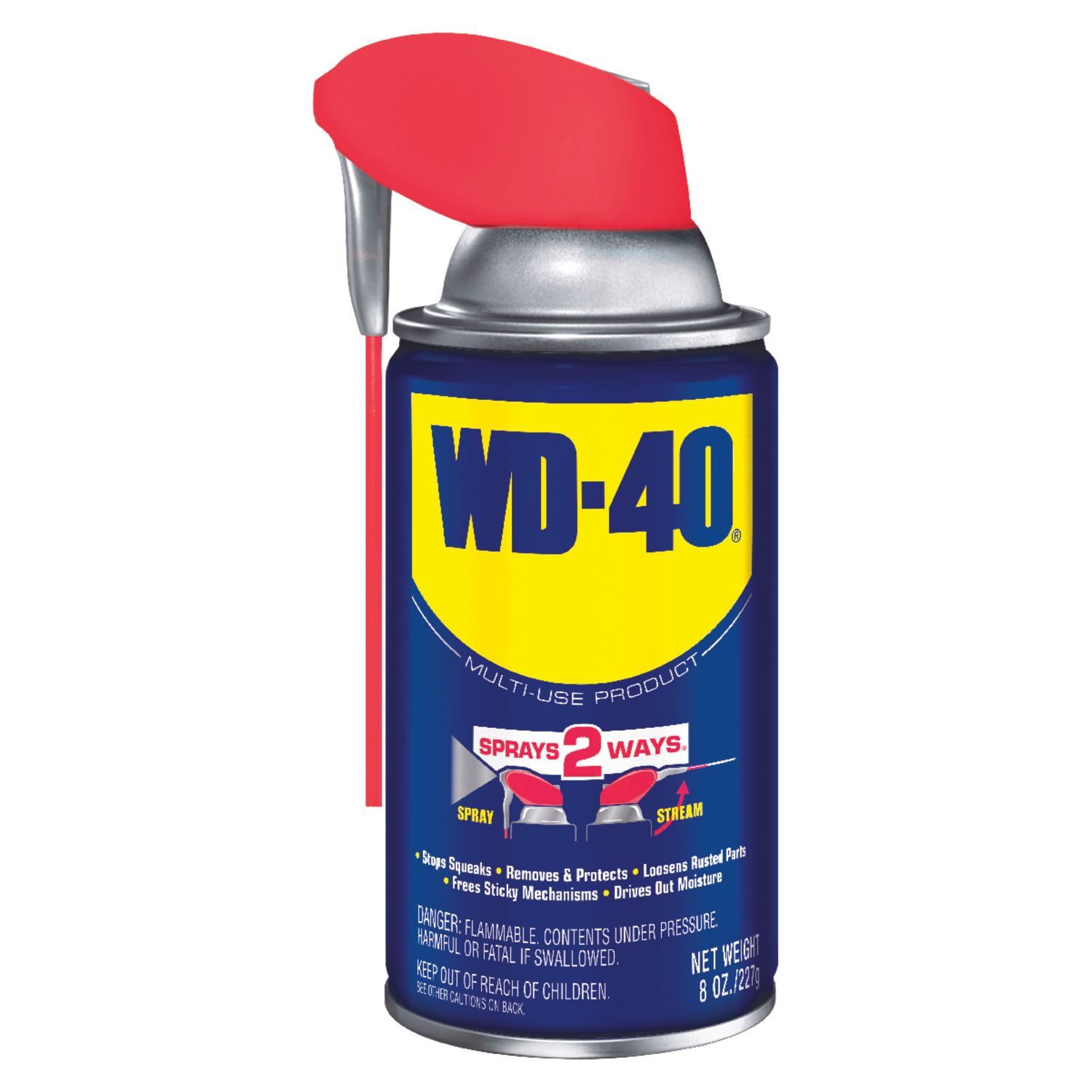 Spray 2 Ways: WD-40 Multi-Use Product protects metal from rust and corrosion, penetrates stuck parts, displaces moisture and lubricates almost anything. Its permanently attached Smart Straw sprays 2 ways. Available in 8 oz., 11 oz., and 12 oz. can sizes. less