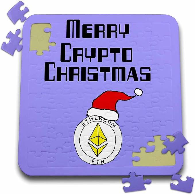 3dRose Cryptocurrency Coin Ethereum Ether Funny and Cute in Santa Hat Puzzle** is a puzzle available in the brand's online store. Its design features a fun and cute representation of the Ethereum cryptocurrency wearing a Santa Claus hat.